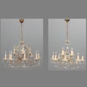 Twee licht verschillende glazen twaalflichts kroonluchters, 42 × Ø 78 cm