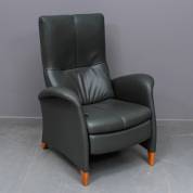 Relaxfauteuil met donkergroene lederen bekleding en beukenhouten pootjes