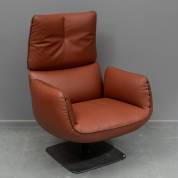 Relaxfauteuil met kastanjebruine lederen bekleding en zwart metalen voet, model Janis, uitvoering Cor