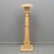 Wit en goud beschilderde houten piëdestal, 20e eeuw -beschildering sleets op kapiteel en voet-, 107 × 31 × 31 cm
