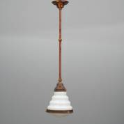Hanglamp met getrapte witte opaline kap, de stang met textiel omwonden -één schroefje ontbreekt in montuur, en één schroefje zwak-, 95 × 20 cm