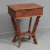Teakhouten naaitafeltje met gesneden vogel- en bloemendecor, Indonesië, tweede helft 20e eeuw