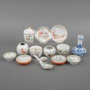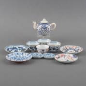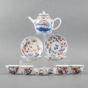 Divers Chinees Imari-porselein: theepot -deksel niet bijbehorend-, kommetjes en schoteltjes, 18e eeuw -enkele kleine randdefecten maar overwegend in goede staat-