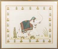 Indiase schildering: olifant binnen kader van bloemen, gouache op zijde, 20e eeuw, 60 × 76 cm