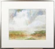 Ton Albers (1923-2019), landschap met wolkenlucht, aquarel, l.o. gesigneerd, 53 × 62,5 cm, daarbij: boek over de kunstenaar