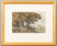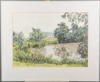 Mees Douglas (1944), vijver met bomen, aquarel op papier, l.o. gesigneerd en gedateerd 1989, 60 × 90 cm