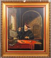 Schilderij: goudweger, olieverf op doek, l.o. gemonogrammeerd JH, 70 × 60 cm