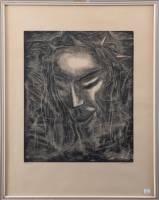 Hollandse School: Christus met doornenkrans, ets op papier, r.o. gesigneerd Jan Th. [Lieven?], l.o. gedateerd in de druk 1961 -wat vergeeld-, 35 × 30 cm