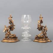 Paar goudkleurige wandconsoles en een glas -defecten-, hoogte 21,5 cm
