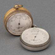 Twee reisbaro- en altimeters, uitvoeringen John Davis & Son, Derby, en Turnbull & Co. Edinburgh -gebruikssporen-, Ø 5 cm