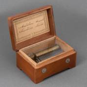 Klein speeldoosje met twee melodieën -speelt, maar heeft wel af en toe wat hulp nodig-, 6 × 11,5 × 8 cm