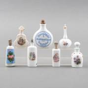Zeven porseleinen parfumflacons, waaronder één uitvoering Meissen