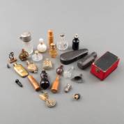 Diverse parfumflacons en toebehoren -gebruikssporen-