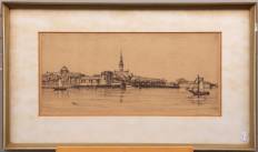 Louis Heijmans (1890-1977), gezicht op Veere, ets, r.o. gesigneerd -licht gebruind-, 17,5 × 39,5 cm