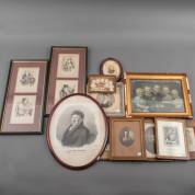 Verzameling ingelijste oude portretfoto's en gravures, waaronder: portret van de vijf oudste kinderen van Ds Evert Pijnappel v. Voorthuijsen en Petronella Helena van Sorgen, eerste helft 19e eeuw -verkleuringen-, portret kinderen 20 × 30 cm