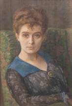 Hollandse School: portret van vrouw met broche, waskrijt, l.o. gesigneerd J.P. Nieuwenhuis en gedateerd 1918, 64,5 × 44,5 cm