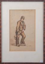 Aquarel: mijnwerker, niet gesigneerd, 19e/20e eeuw -enkele roestvlekjes-, 25,5 × 16 cm