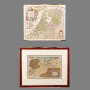 Twee kaarten: Kaart van Friesland en Groningen, 'Frisiorvm Regionis Novissde Descriptio', gedateerd 1568 maar latere druk, -verkleurd-, ingelijst, en kaart van Nederland, 'Belgii pars septentroinalis communi nomine Vulgo Hollandia, Neurenberg, J.B. Homann, na 1729 -defect r.b.-, 52,5 × 60 cm, ingelijst
