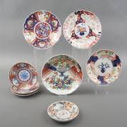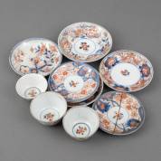 Drie diverse Japans porseleinen Imari kommen en zeven schotels, 18e eeuw -defecten-
