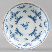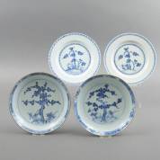 Twee paar Chinees porseleinen borden met blauw-wit pijnboomdecor, 18e eeuw -defecten-, Ø 23 cm