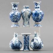 Zes diverse Chinees porseleinen vaasjes met blauw-witte decors, Kangxi -defecten-, hoogste 11 cm