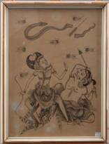 Indonesische School: Hindoeïstische mythologische voorstelling, niet gesigneerd, Indonesië -vlekjes-, 39,5 × 29 cm