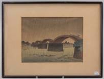 Arai Yoshimune (1873-1945), ‘Kintai bridge in Suo Province’, houtblokprint, r.o. gesigneerd, 18 × 23 cm