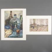 Martinus Leonardus Middelhoek (1898-1986), twee werken: stilleven met flessen en appel, aquarel op papier, l.o. gesigneerd, 47 × 36 cm, en landschap met boer, koeien en boerderij, aquarel op papier, r.o. gesigneerd, 21 × 29 cm