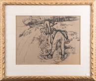 Franse School: arbeiders op het land, inkt op papier, niet gesigneerd, 20e eeuw, 28 × 37 cm