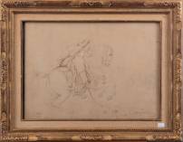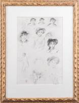 Franse School: studietekeningen van vrouwen, in de stijl van Renoir, r.o. gesigneerd maar niet van zijn hand, inkt en krijt op papier -bruine vlekjes-, 37 × 25 cm