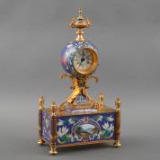 Tafelklok in deels email cloisonné kast, met modern elektrisch uurwerk, 20e eeuw, 47 × 26 × 15 cm