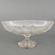 Ovale kristallen tazza met ruitslijpsel en een gelobde voet -enkele minieme chipjes-, 15 × 33,5 × 17,5 cm