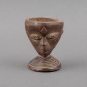Houten vijzel in de vorm van een gezicht, Pende, Democratische Republiek Congo, 20e eeuw -krimpscheur, gebruikssporen-, hoogte 13 cm