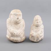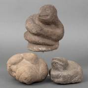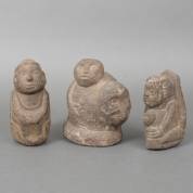 Drie stenen beelden in de vorm van figuren, hoogste 18 cm