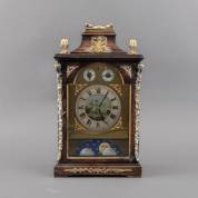 Tafelklok in notenhouten kast, met maanstand, speelwerk op gong, en messing beslag, uitvoering Junghans, 18e-eeuwse stijl, begin 20e eeuw -gebruikssporen en kleine defecten, inclusief slinger en sleutel-, 45 × 26 × 19 cm