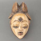 Zwart-witgeschilderd Afrikaans houten masker, Punu-Lumbo, tweede helft 20e eeuw, 33 × 19 × 12 cm