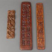 Rechthoekig gesneden meubelfragment, Vlaanderen, 17e eeuw, daarbij: twee diverse speculaasplanken, meubelfragment 9 × 36 cm