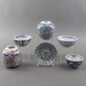 Divers Makkumer aardewerk met polychroom decor, bestaande uit: paar kommen, twee diverse potten, bordje, en blauw-wit gedecoreerde kom, uitvoering Tichelaar, bordje Ø 16,5 cm