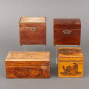 Vier diverse houten theekistjes, 19e eeuw -defecten-, grootste 9 × 19 × 10 cm