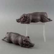 Paar bronzen deurstoppers in de vorm van liggende varkens, modern, 30 × 9 × 9 cm