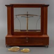Apothekersweegschaal in mahonie kast, uitvoering Becker's Sons, Brummen -gebruikssporen-, 39 × 40 × 20 cm