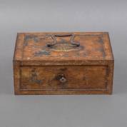 Gehout ijzeren geldkistje, gemaakt in de 'Fabrik feuersicherer Schränke R. Tánczos', Wenen, eind 19e eeuw, 14 × 33 × 21 cm