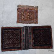 Perzische dubbele zadeltas Belouche, en zadeltas Ersari -gebruikssporen-, dubbele zadeltas 130 × 57 cm