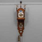 Fries schippertje in eiken kast -geen slinger en gewichten, slechts twee van de drie ornamentjes aanwezig-, 71 × 23 × 17 cm