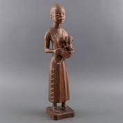 Afrikaans houten beeld in de vorm van vermoedelijk een Yoruba vrouw met kind, niet gesigneerd, hoogte 63,5 cm