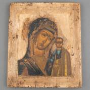 Russische ikoon: Moeder Gods Hodegetria, tempera op paneel -verfverlies, 19e eeuw, 31 × 26,5 cm