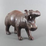 Met leder belijmd beeld: nijlpaard, circa 30 × 50 × 18 cm