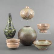 Divers modern keramiek, waaronder Kees Hoogendam en Hans van Riessen, daarbij: natuurstenen kommetje, puntvaasje 20,5 × Ø 10 cm