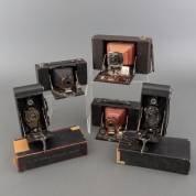 Vijf fotocamera's, modellen: No.3 Folding Hawk-Eye, No.2 Folding Brownie, Brownie Automatic, No.2a Folding Cartige Hawk-Eye, en No.2a Folding Autographic Brownie, alle uitvoering Kodak -alle met gebruikssporen, laatstgenoemde modellen in doos-