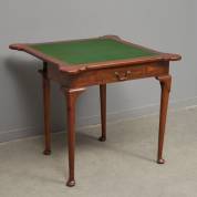 Mahonie speeltafeltje met groen vilten blad, 20e eeuw -gebruikssporen-, 71 × 80 × 39,5-78,5 cm